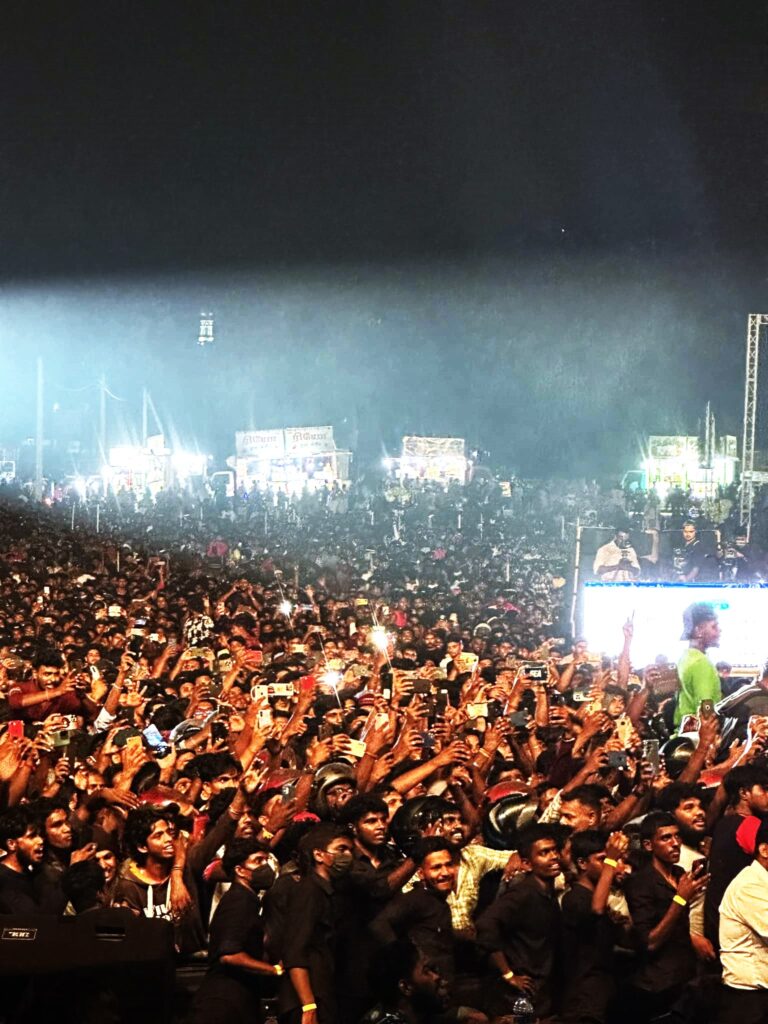 அது ஒரு மழை நாள்.அன்று பின்னேரம் மழை விட்டுத் தந்தது.முத்த வெளியில் கடந்த 15 ஆண்டுகளில் இதுவரை காணாத சன வெள்ளம். அந்த இடத்தில் இதற்கு முன் வர்த்தகக் காட்சிகள் நடந்திருக்கின்றன.அவற்றுக்கும் மக்கள் திரண்டு வந்தார்கள்.ஆனால் சந்தோஷ் நாராயணனின் இசை நிகழ்ச்சிக்கு முன்னப்பொழுதும் இல்லாத அளவுக்கு சனம் திரண்டது.முனியப்பர் கோயிலுக்கு முன்னுள்ள வெளியிலும் சாலைகளின் இரு புறங்களிலும் வாகனங்கள் வரிசையாக நின்றன.பால் வேறுபாடு இன்றி,வயது வேறுபாடு இன்றி பல்லாயிரக்கணக்கானவர்கள் கலந்து கொண்ட ஒரு நிகழ்ச்சி அது.பாடகர்கள் பாடப்பாட அங்கு கூடியிருந்த இளையோர் உற்சாகமாக ஆடினார்கள்.
